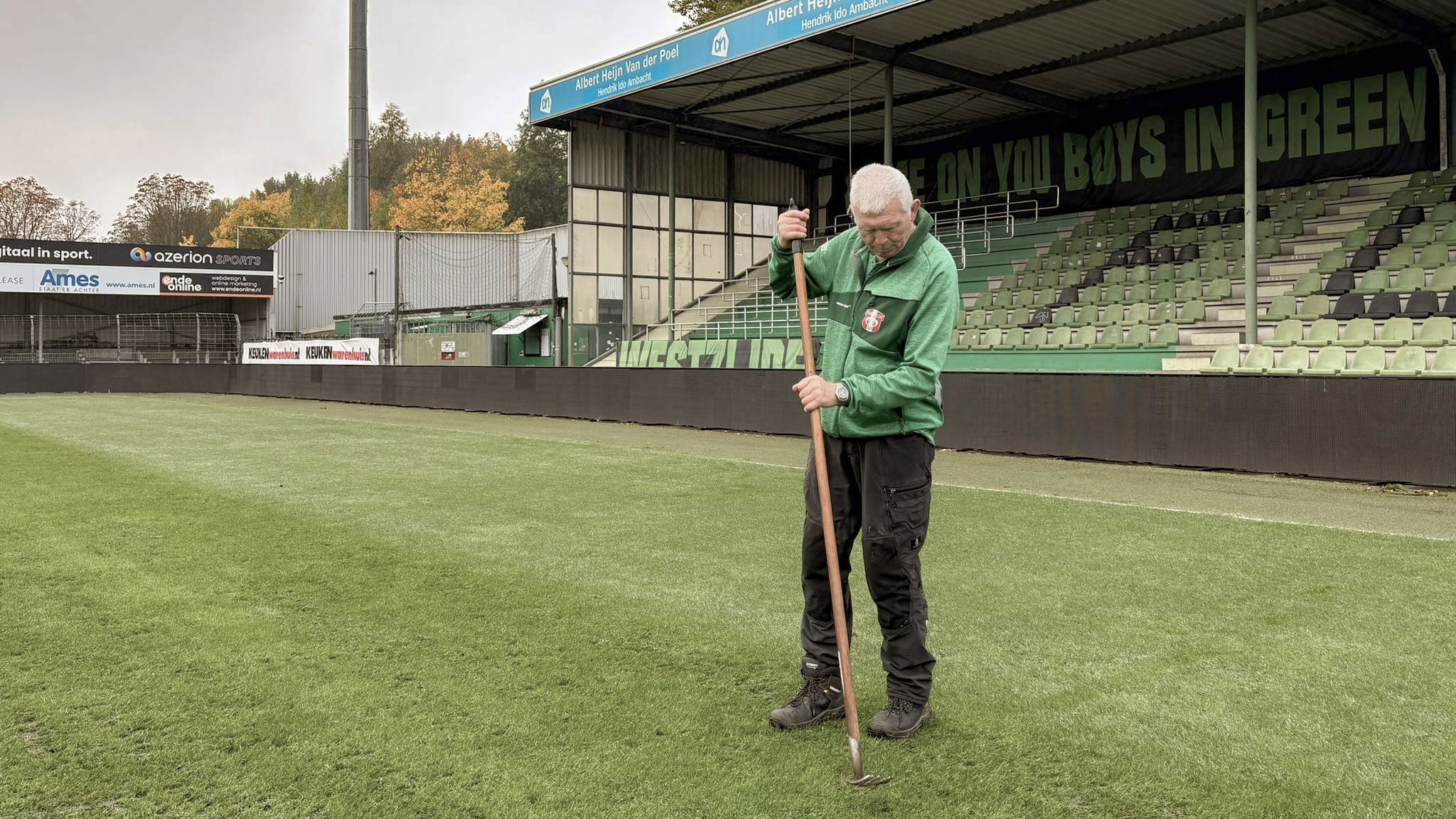 Vandaag nemen we een kijkje achter de schermen bij een van die onmisbare krachten: grasmeester Jan Kijkuit. Al vijftien jaar lang zorgt Jan met hart en ziel voor de grasmat aan de Krommedijk. Herstellen, prikken, maaien. Het hoort er allemaal bij. “Ik ben hier bijna elke dag”, vertelt hij trots. “Dit is mijn levenswerk.”