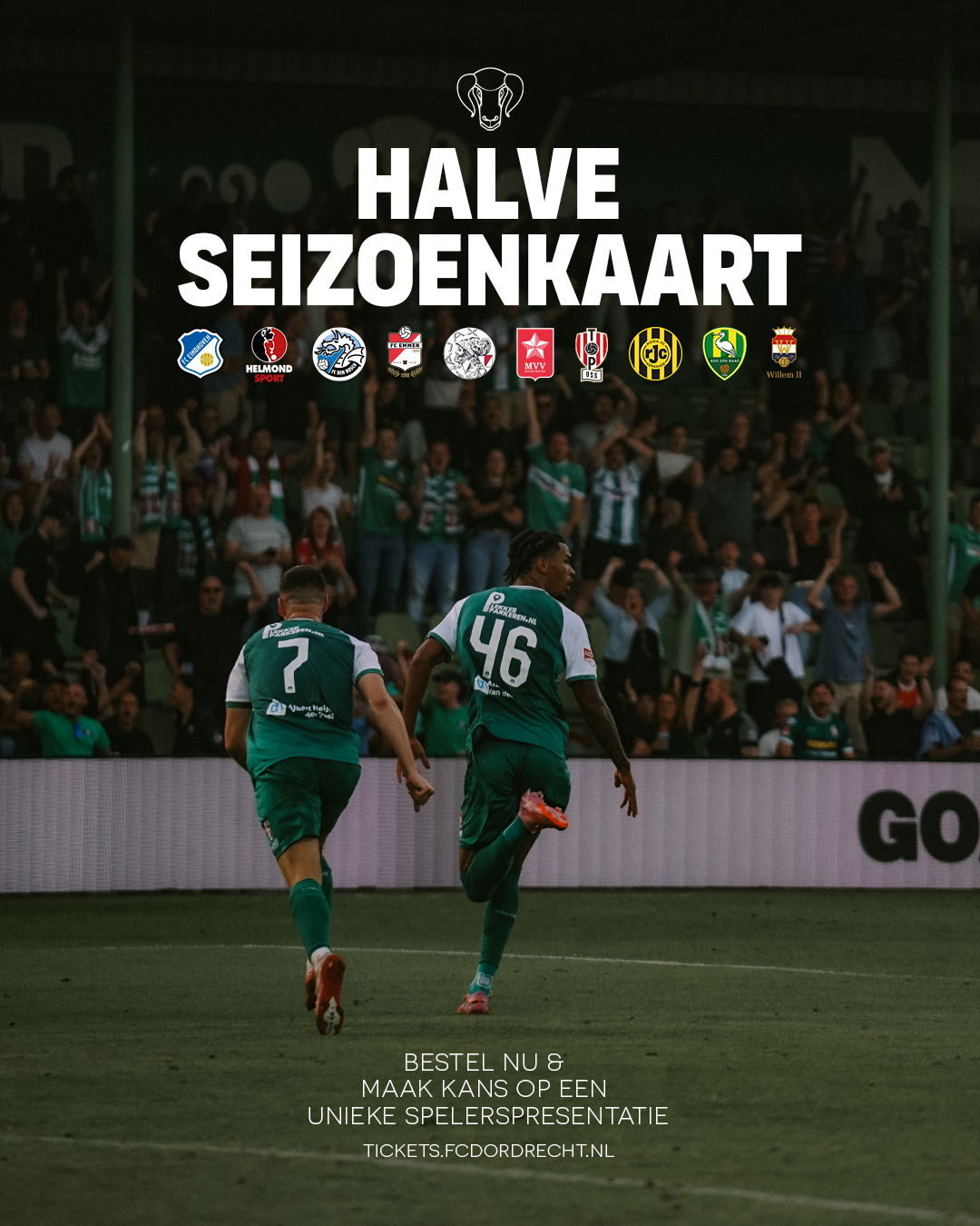 Word jij onze eerste winterversterking? Vanaf vandaag kun je een halve seizoenkaart aanschaffen voor de laatste tien thuiswedstrijden. Zo ben je er bij in de spannendste fase van het seizoen én maak je kans op een exclusieve spelerspresentatie bij FC Dordrecht.