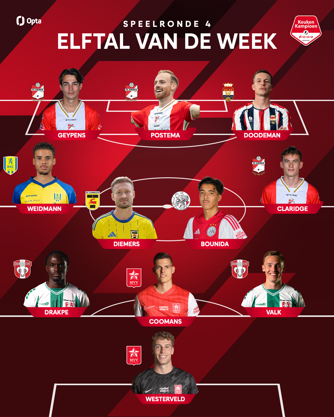 FC Dordrecht levert twee spelers voor het Elftal van de Week in de Keuken Kampioen Divisie. Sem Valk en Augustin Drakpe hebben een plek veroverd in het team van de voorbije speelronde.