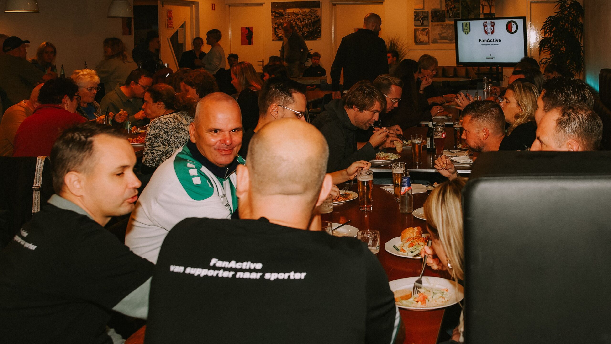 Bij Jubal Dordrecht stond een sportieve maaltijd klaar, net als bij de spelers zelf. Na korte toelichtingen van de drie clubs volgde een gezellige pubquiz met vragen over de drie verenigingen en het FanActive-programma. Daarna wandelden de groepen samen naar het stadion, waar volop werd gepraat over wie er zou winnen.