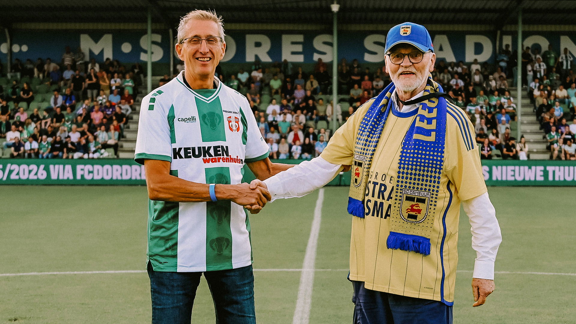 FC Dordrecht trapte het Keuken Kampioen Divisie-seizoen 2025/2026 afgelopen vrijdag op bijzondere wijze af. Voor de aftrap van FC Dordrecht – SC Cambuur (1-0) gaven twee trouwe supporters van beide clubs samen het symbolische startsein van het nieuwe seizoen.