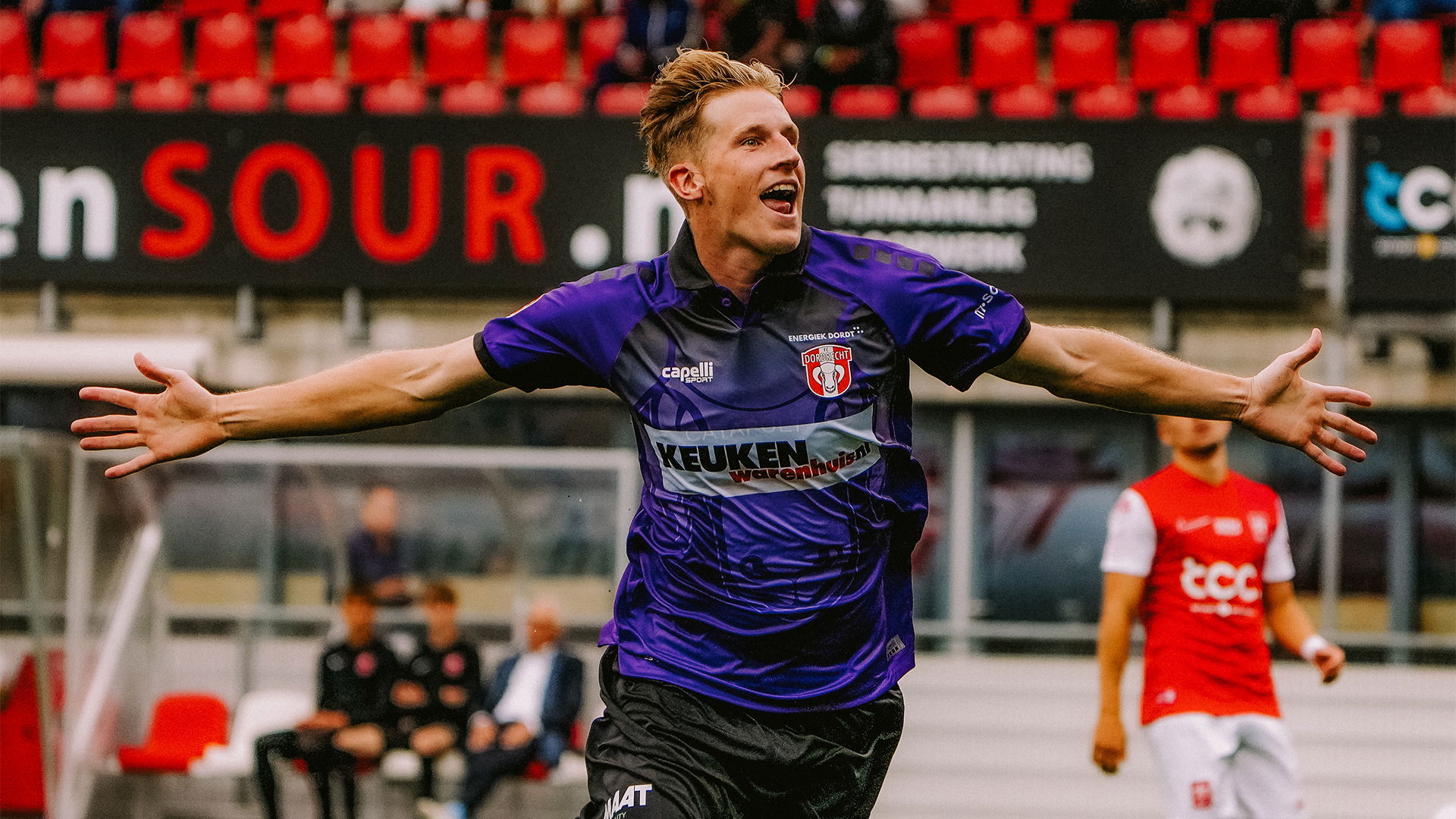 FC Dordrecht heeft zaterdagmiddag het eerste uitduel van het seizoen 2025/2026 winnend afgesloten. De ploeg van hoofdtrainer Dirk Kuyt won op bezoek bij MVV Maastricht met 0-1. Joep van der Sluijs kroonde zich tot matchwinner in Stadion De Geusselt.