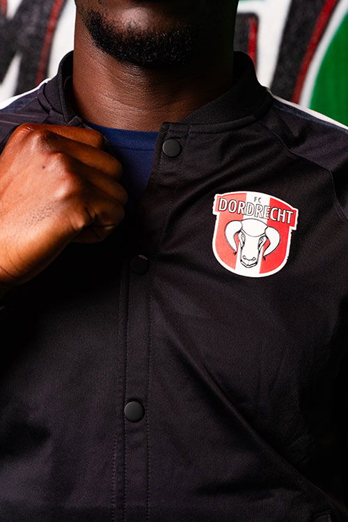 De officiƫle Presentatie Jacket van FC Dordrecht, die de spelers dragen op weg naar hun wedstrijden!